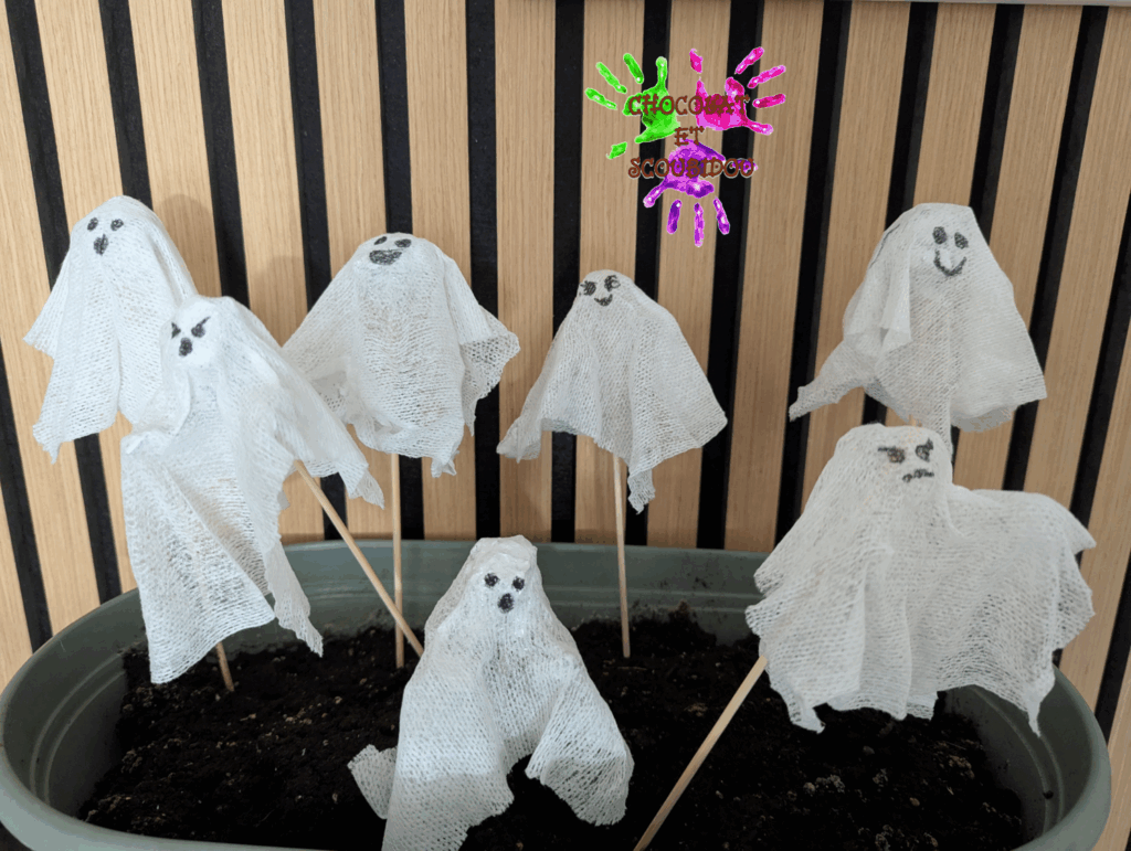 On voit depuis quelque temps fleurir sur les réseaux de jolis petits fantômes réalisés avec du coton à fromage. Il faut dire qu’ils sont simples à fabriquer et demandent peu de matériel. Le seul inconvénient, c’est que ce tissu n’est pas toujours facile à trouver. Dans notre version, nous avons choisi des matériaux beaucoup plus accessibles : encore des compresses non tissées (qu’on trouve facilement en pharmacie). Le résultat ? De charmants petits fantômes très légers que l’on transforme en une guirlande ou, encore mieux, en un mobile aérien grâce à un anneau de broderie. Accrochés, ils semblent danser au moindre courant d’air… parfait pour une déco d’Halloween pleine de poésie !