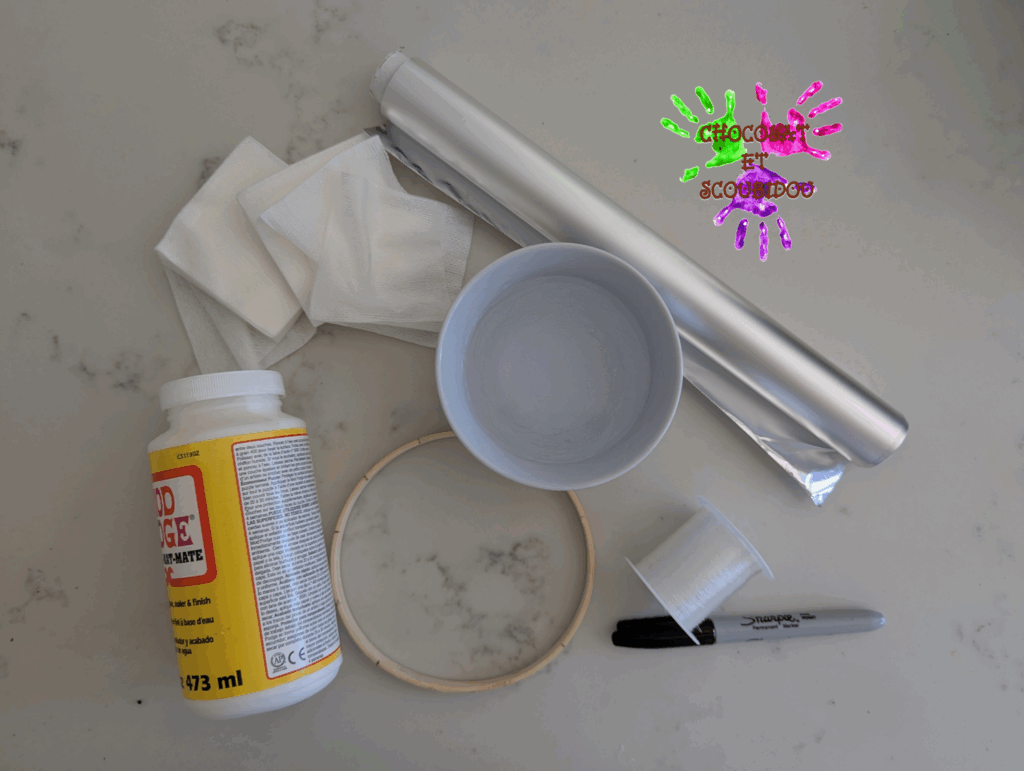 - Préparer la colle : mélanger 1 volume d’eau avec 2 volumes de Mod Podge.