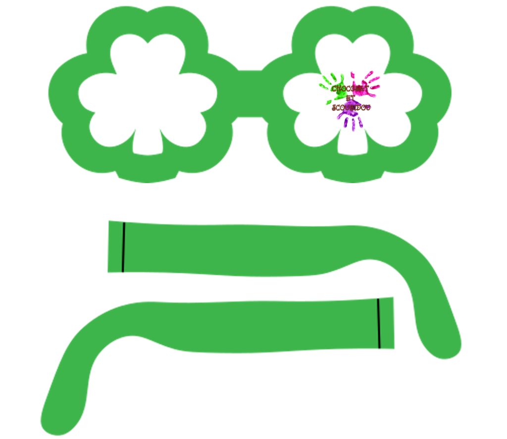 - Imprimer un modèle de lunettes en forme de trèfle ou dessiner deux grands trèfles reliés par un pont pour le nez. Ajouter deux bandes pour les branches des lunettes.