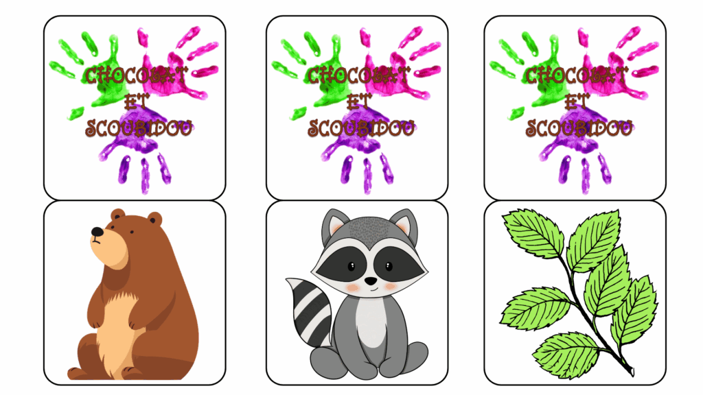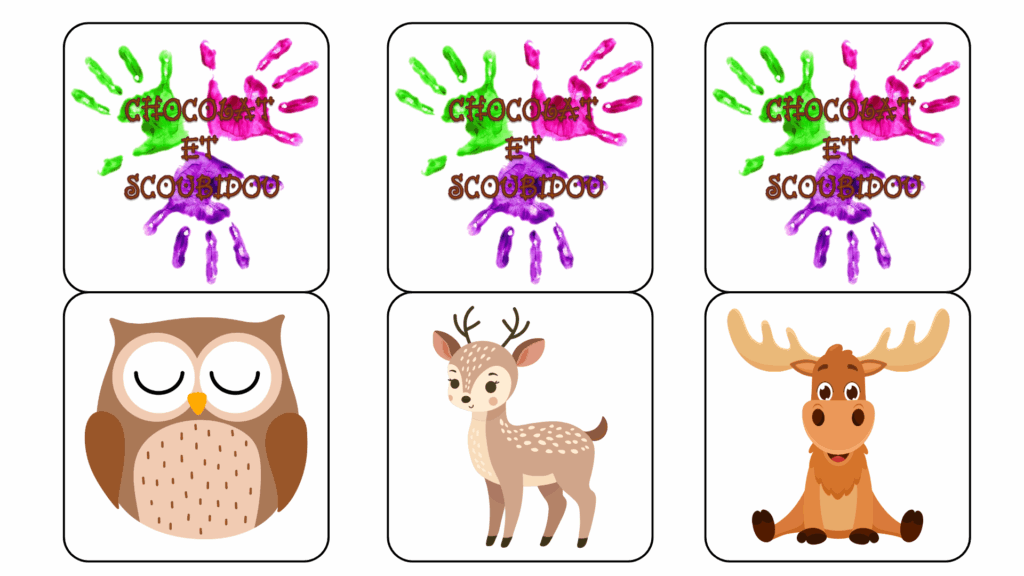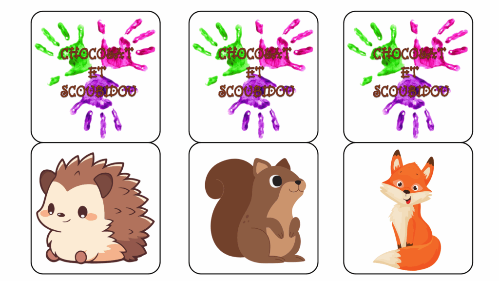 Pour des enfants un peu plus grands, pourquoi ne pas enrichir le jeu en associant une carte avec l’image et une carte avec le mot écrit (ex. : dessin d’écureuil sur une carte – le mot “Écureuil” sur l’autre), pour lier amusement et apprentissage de la lecture.