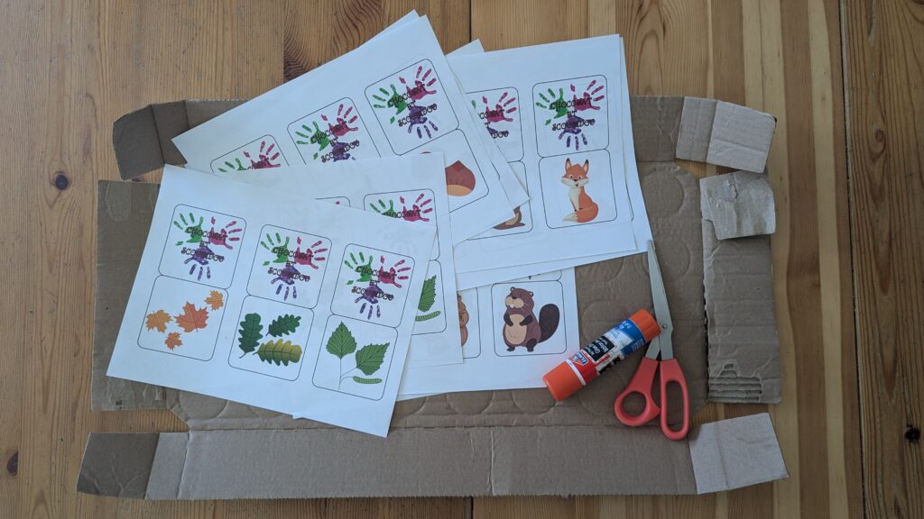 - Imprimer des images trouvées en ligne, les découper et les coller sur les cartes. Ou imprimer les cartes proposées en bas de l’article.