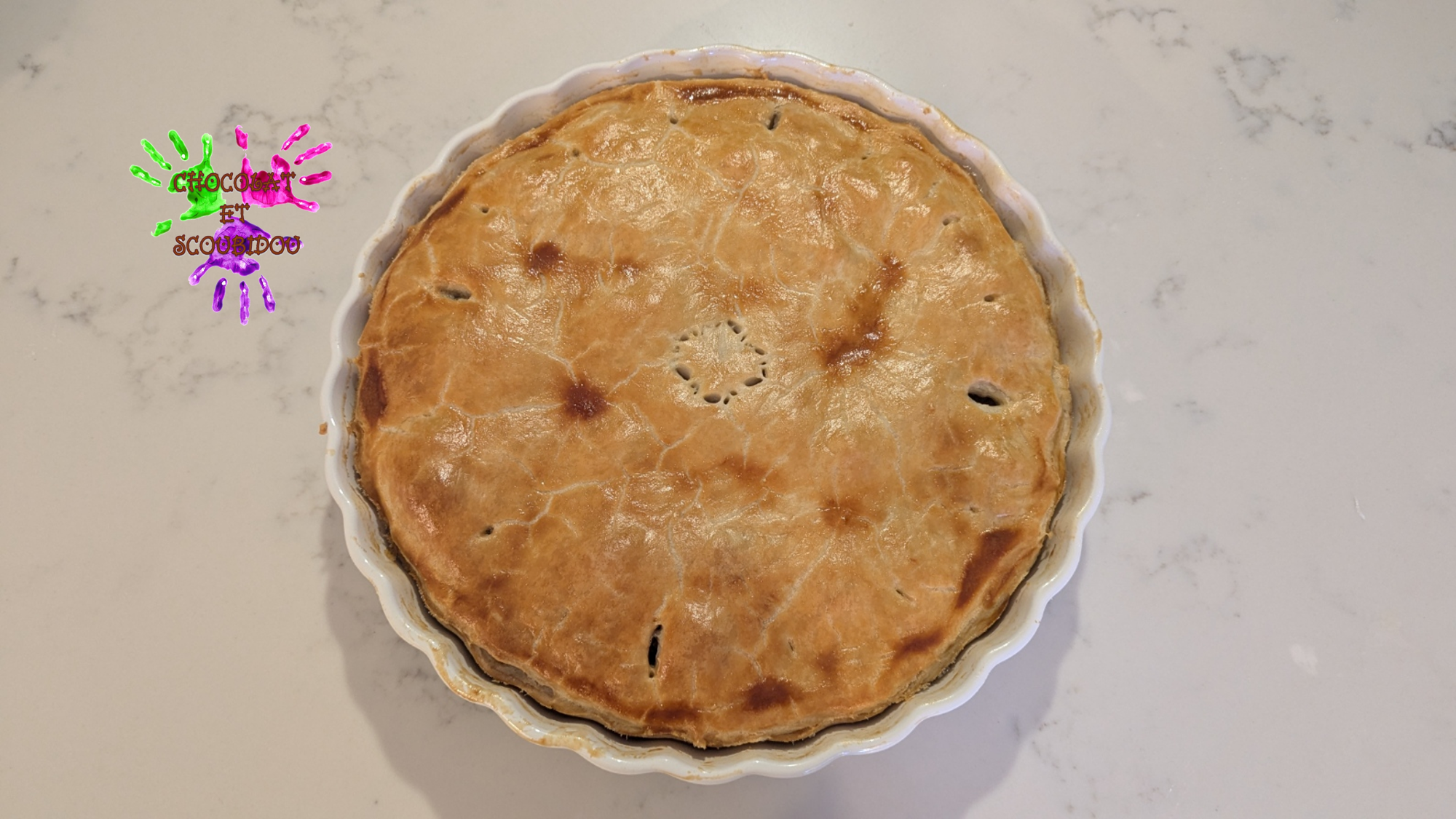 - Cuire la tourtière 1 h à 1 h 15, jusqu’à ce que la pâte soit bien dorée.