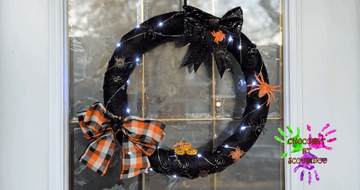 Collage Couronne de porte pour Halloween Ecrit par Aurélie Halloween approche à grands pas et c’est le moment parfait pour transformer la maison en